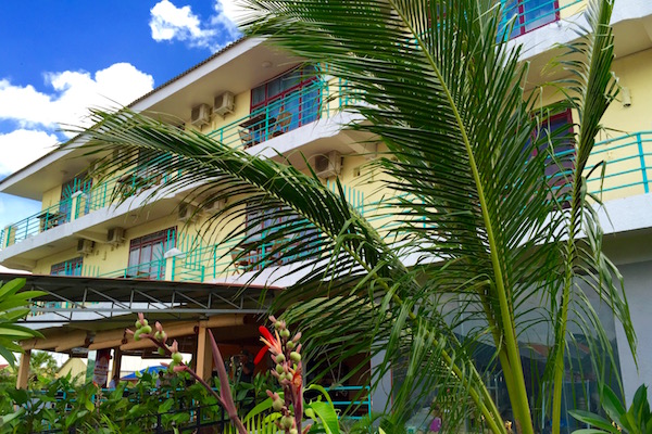 Guests can enjoy a relaxing swim in the hotel's pool, a refreshing welcome after a hot day of sightseeing. The morning sun warms the pool and illuminates the soft sun loungers, perfect for sunbathing. The pool area is shaded from mid- to late afternoon. Pool access is complimentary for hotel guests. Visitors can purchase a pool party ticket for a few dollars per person, which includes a shower, towel, swimming, a burger or sandwich, and a complimentary glass of beer, wine, or soft drink. If you don't have your own transportation, find one of the hotel's tuk-tuks near the port, and the roundtrip is free!